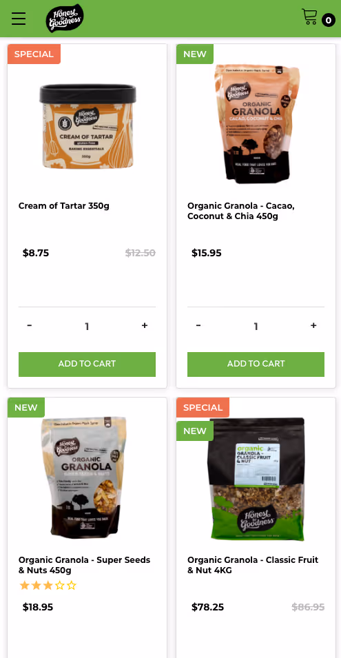 Honest to Goodness required a cohesive digital solution to manage their diverse online presence effectively. Moustache Republic consolidated their Retail, B2B, and 2Die4 stores under BigCommerce’s multi-storefront framework, each with tailored themes to reflect individual brand identities. We integrated Zoho CRM and SysPro ERP, facilitating real-time synchronisation of orders and pricing across customer segments. The implementation of Shogun empowered the internal team to manage content autonomously, while the transition to DooFinder enhanced product discovery and search functionality. This comprehensive approach streamlined operations, improved user experience, and positioned Honest to Goodness for scalable growth.
